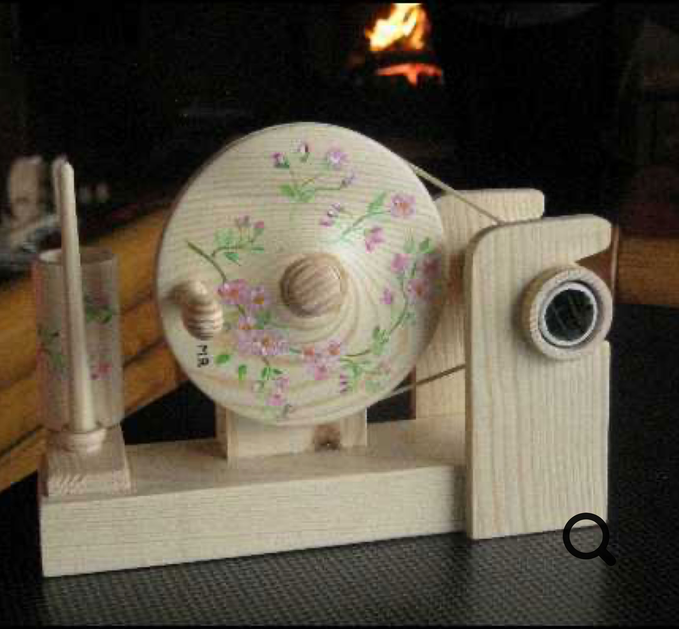 Bobinoir en bois de pin décoré