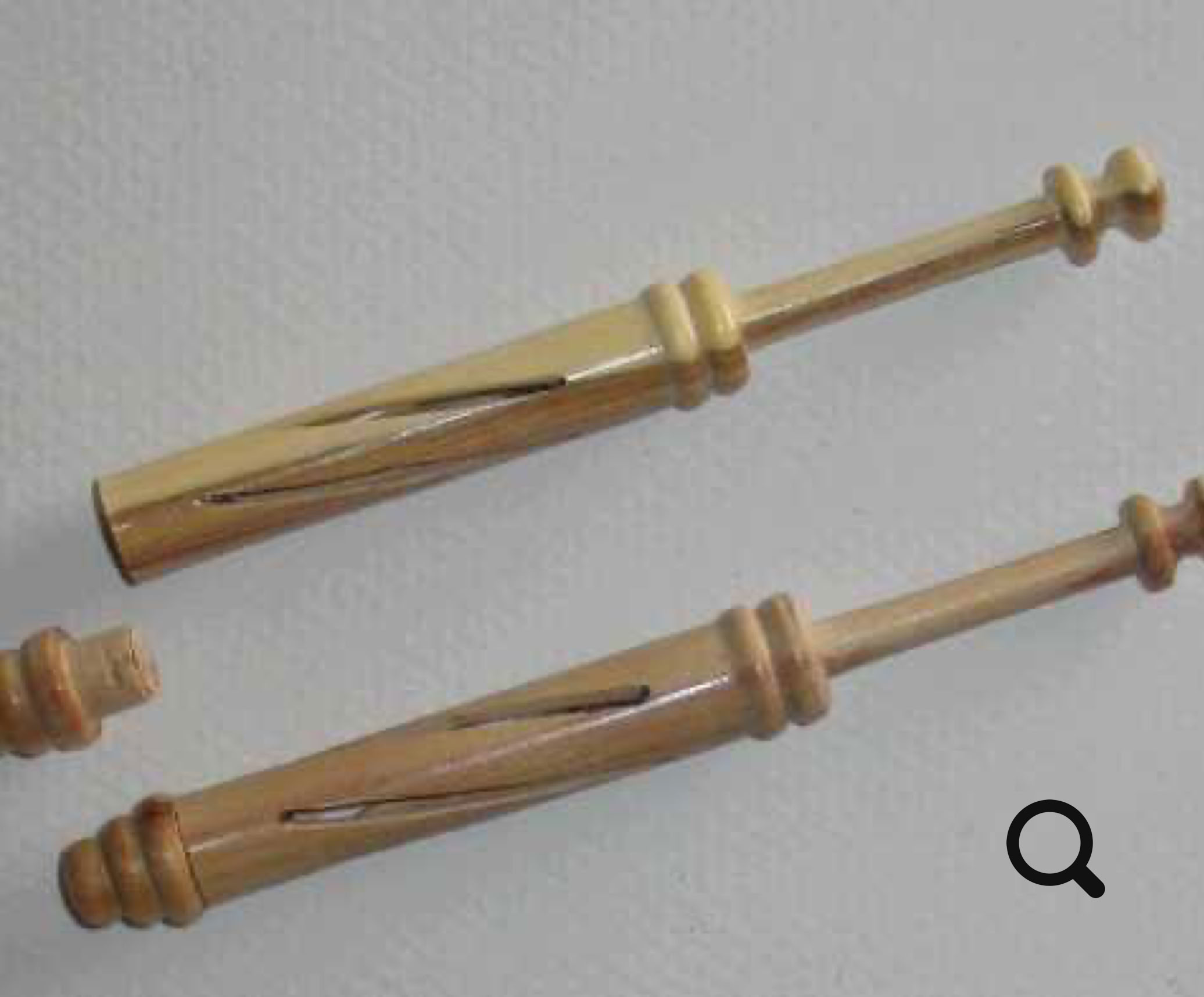 Ces 2 fuseaux sont en bois de Lilas. Le cylindre du corps est ajouré avec 4 fenêtres en