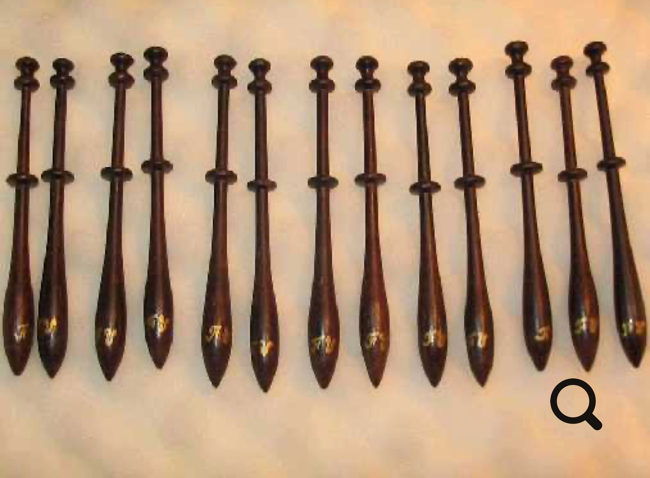 Fuseaux avec vos initiales sur bois d'ébène ou palissandre ou tout autre bois foncé suivant disponibilité