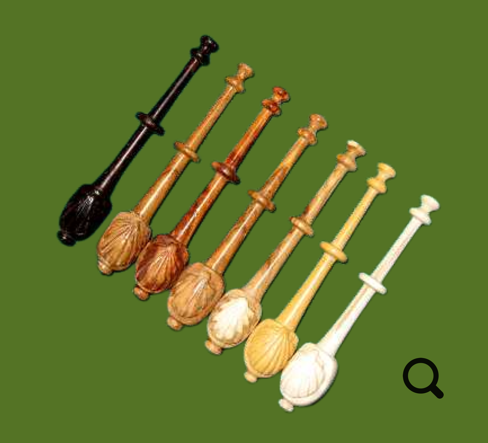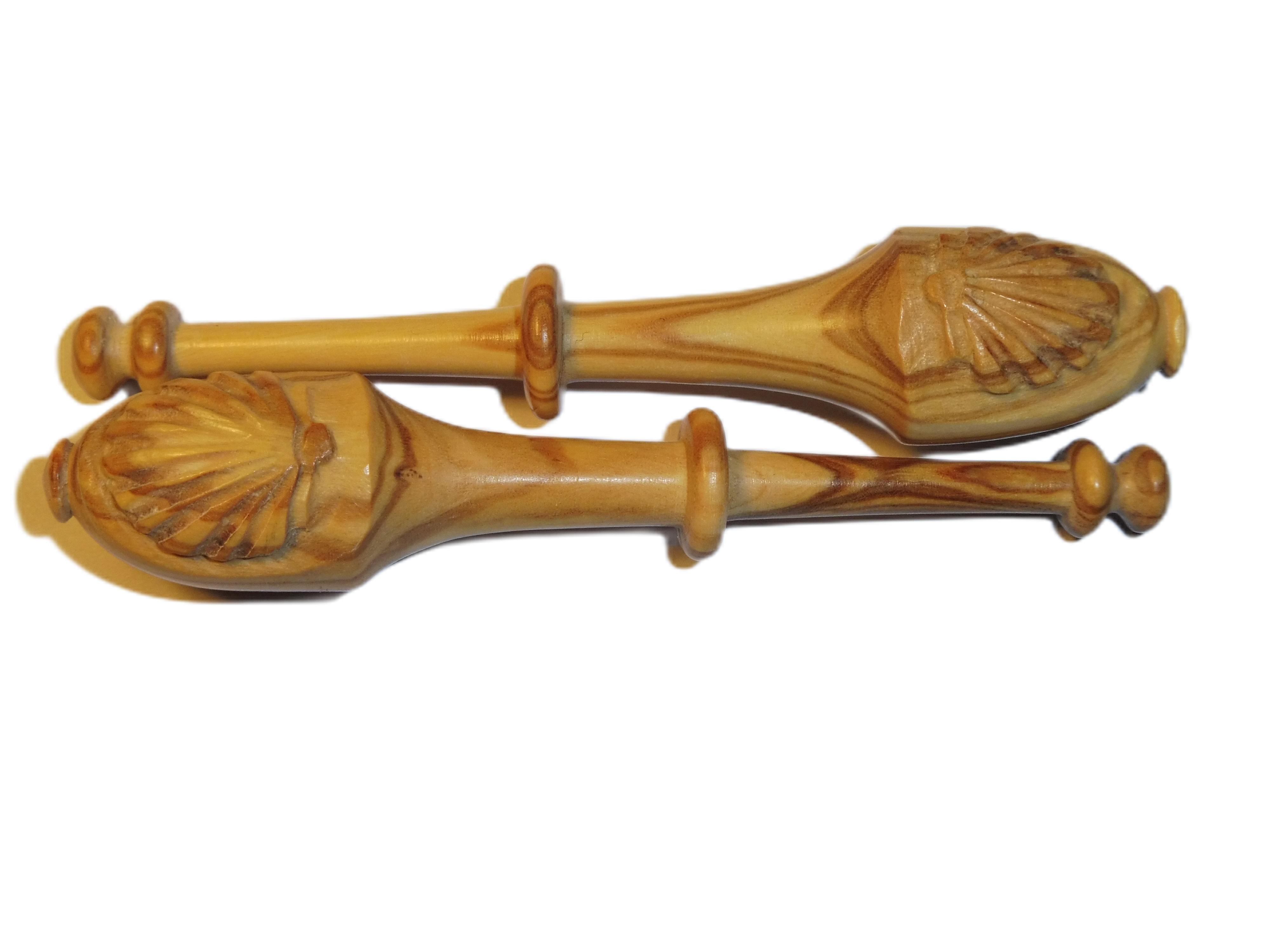 comme départ pour Saint Jacques de Compostelle. Ces fuseaux représentent les deux avec la coquille du pélerinage de St Jacques sculptée à la main dans le manche.